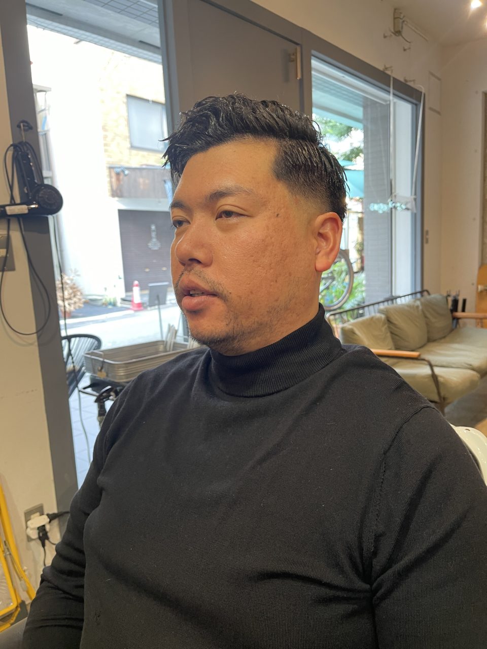 このモデルさんは 毛量が多く っド直毛の髪質になります。